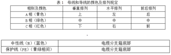 (1)選用選用矩形母線,材料為T2電工銅。并選用不同相色熱縮套管做絕緣處理。熱縮套管不得開裂和起皺,母線接頭處用熱縮絕緣盒關(guān)閉。絕緣熱縮護(hù)套材料應(yīng)具有阻燃、防腐、抗老化的要求,老化壽數(shù)不小于30年,具體試驗(yàn)辦法和要求參照GB/T2951.14中規(guī)則實(shí)施。(2)銅排截面的挑選應(yīng)確保能夠耐受IEC60298中引薦的額外短時(shí)耐受和峰值耐受電流的要求,N相(L0)母線與三相母線規(guī)范相同,PE排截面不低于相排截面的1/2。其間設(shè)于野外的低壓電纜分支箱配備4根母排(3L+PEN),設(shè)于戶內(nèi)的低壓電纜分支箱配備5根母排(3L+N+PE)。(3)設(shè)備中母線和導(dǎo)線的色彩及擺放應(yīng)契合GB/T4026和GB7947及表1的規(guī)則;